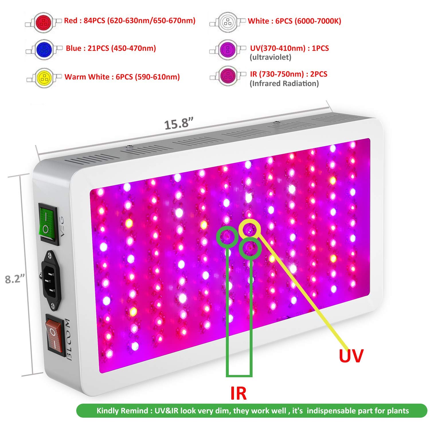 This is a full spectrum led grow light with lighting ranging from 380nm to 780nm.
